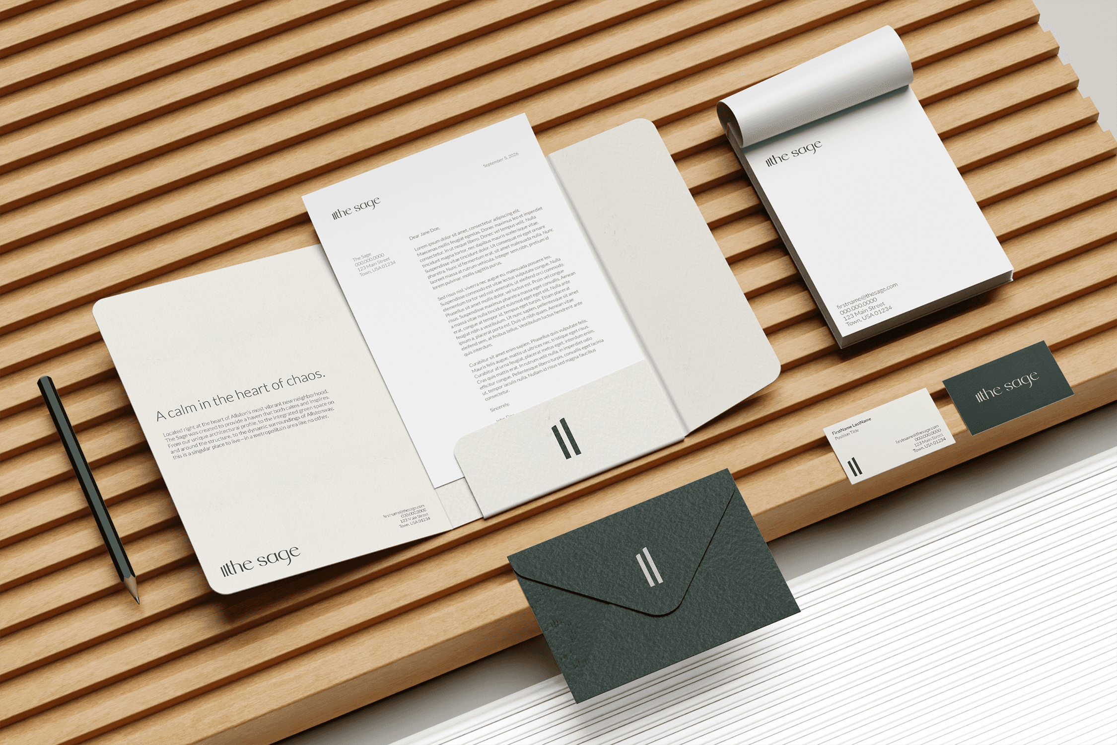 For their new luxury apartment development, The Sage, the client sought a brand identity that evoked its vision: a serene retreat amidst the hustle and bustle of urban life.